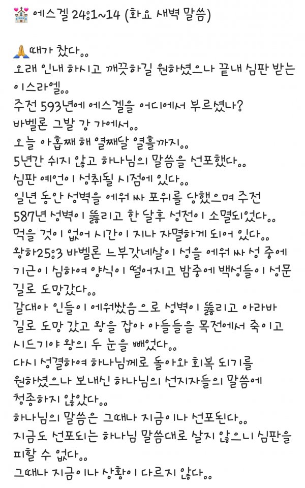 화요 새벽 말씀 8.20.19.