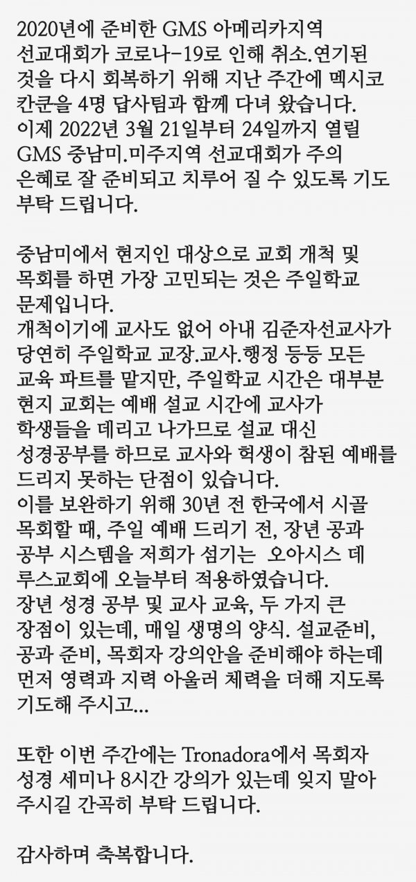 코스타리카 조운제 선교사님의 기도 제목입니다 2.7.22.
