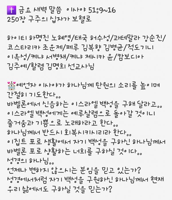 금요 새벽 예배 7. 30.21.
