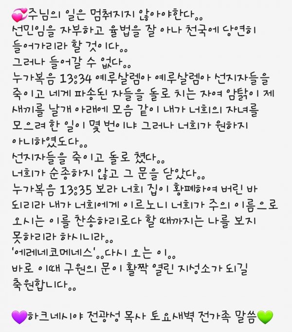 토요 새벽 전가족 말씀 2 13.21.