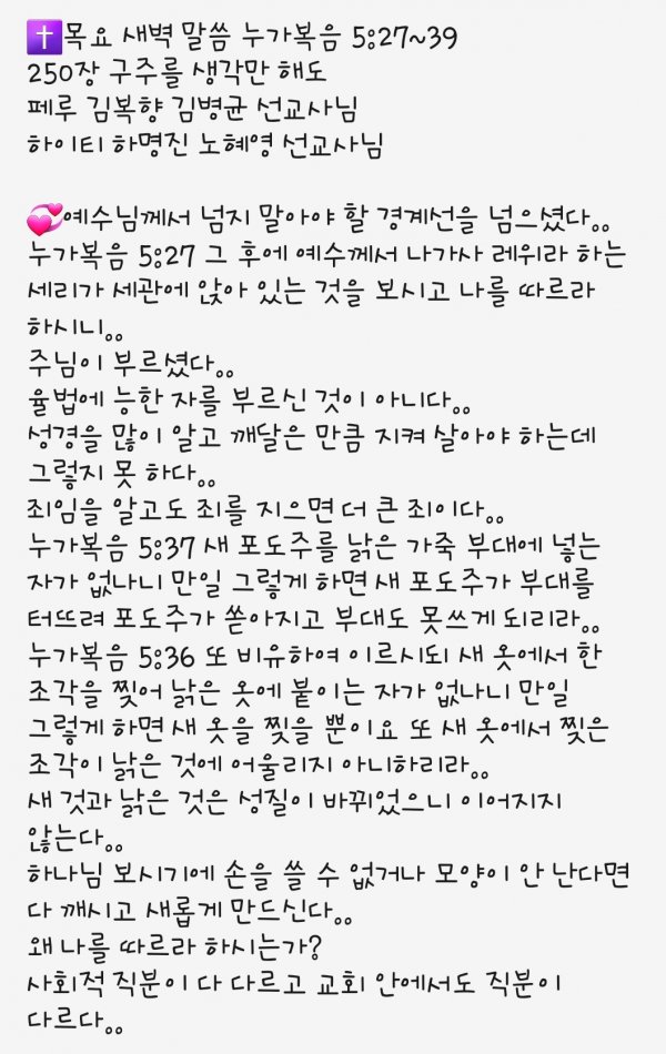 화요 새벽 말씀 1.12.21.