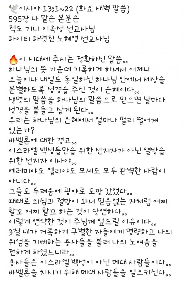 화요 새벽 말씀 7.28.20.