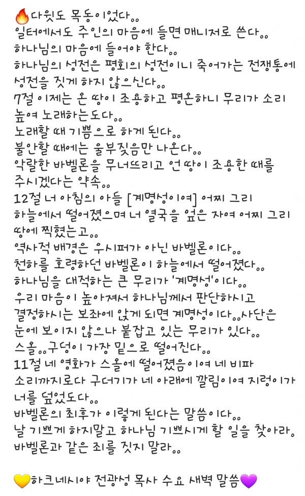 수요 새벽 말씀 7.29.20.