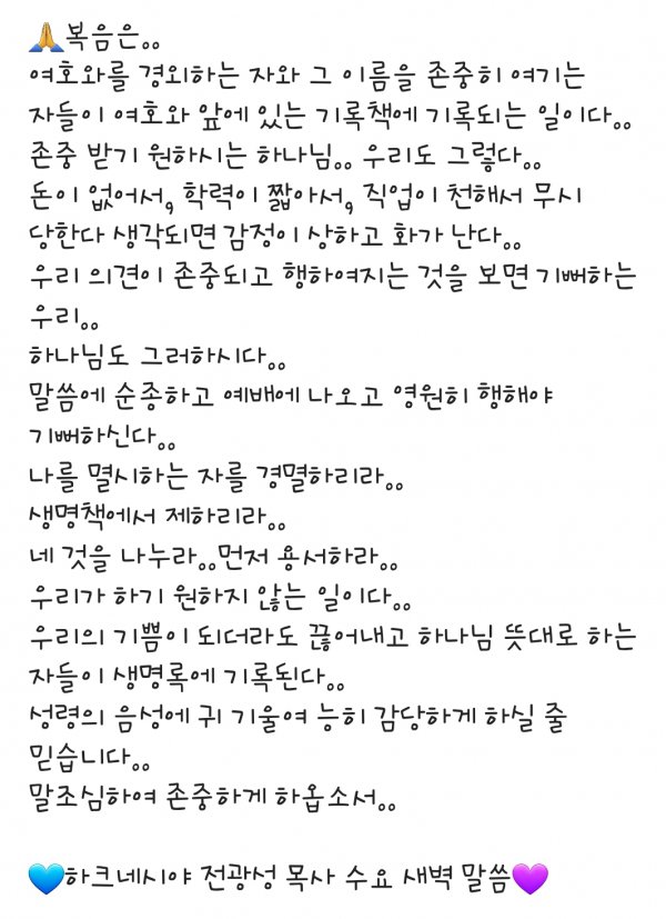 수요 새벽 말씀 11.20.19.