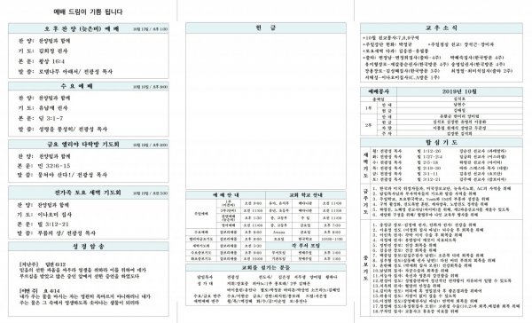 2019년 10월 13일 교회소식