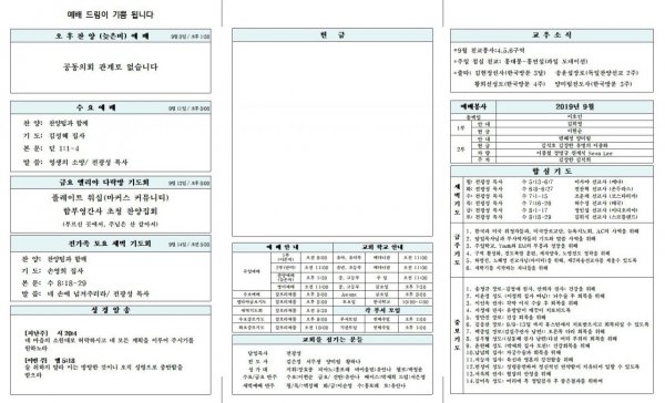 2019년 9월 8일 교회소식