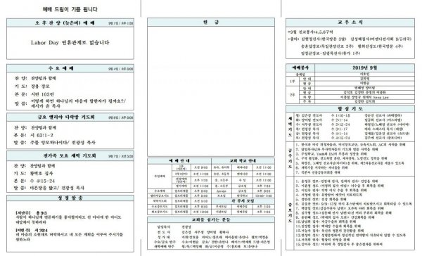 2019년 9월 1일 교회소식