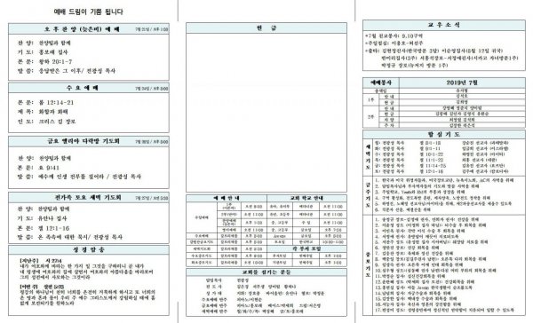2019년 7월 21일 교회소식
