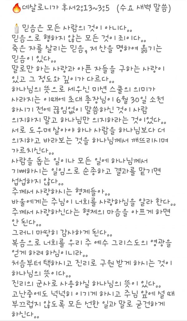 수요 새벽 말씀 7.10.19.