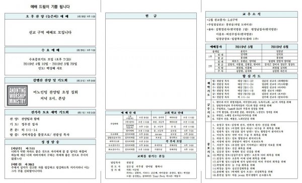 2019년 5월 26일 교회소식