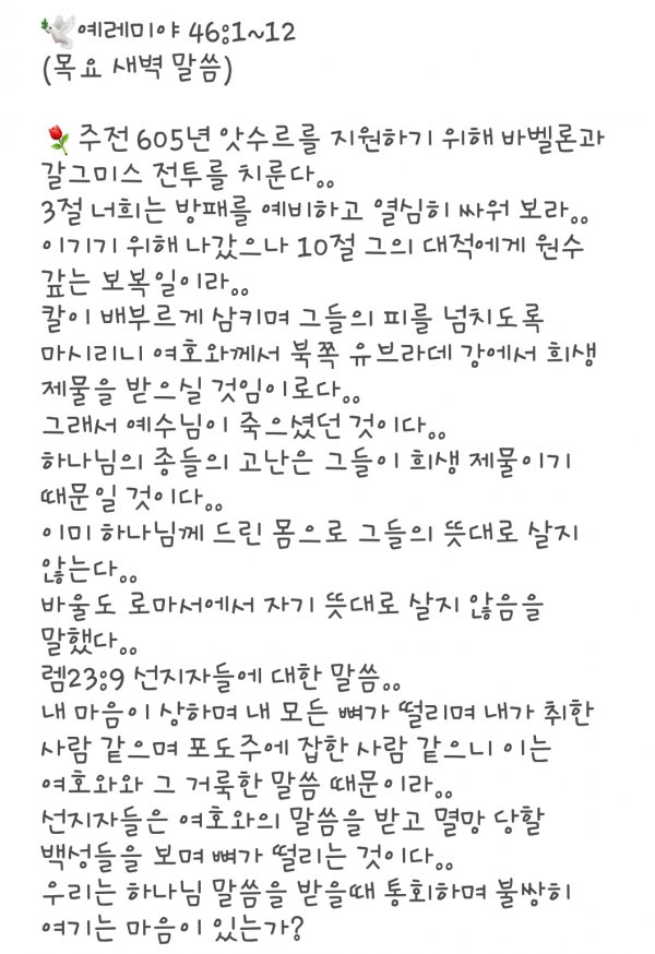 수요 새벽 말씀 11.21.18.