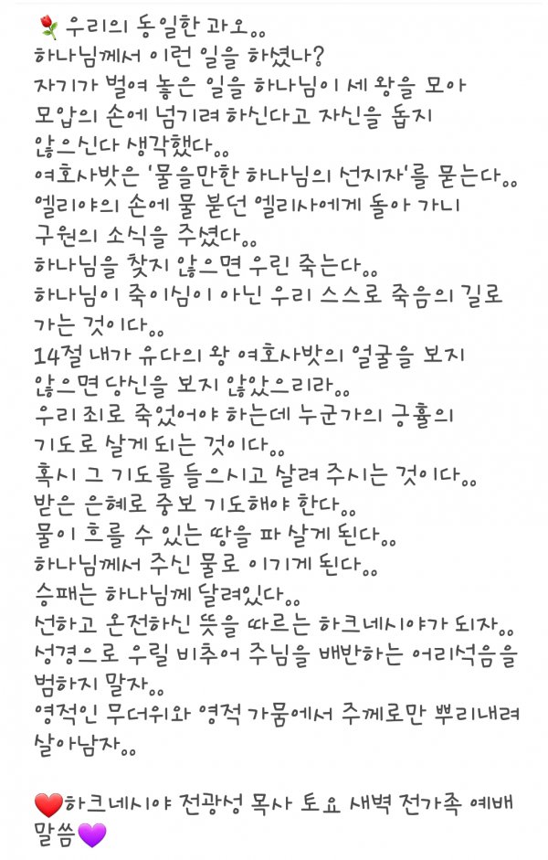 토요 전가족 새벽 예배 말씀 7.21.18.